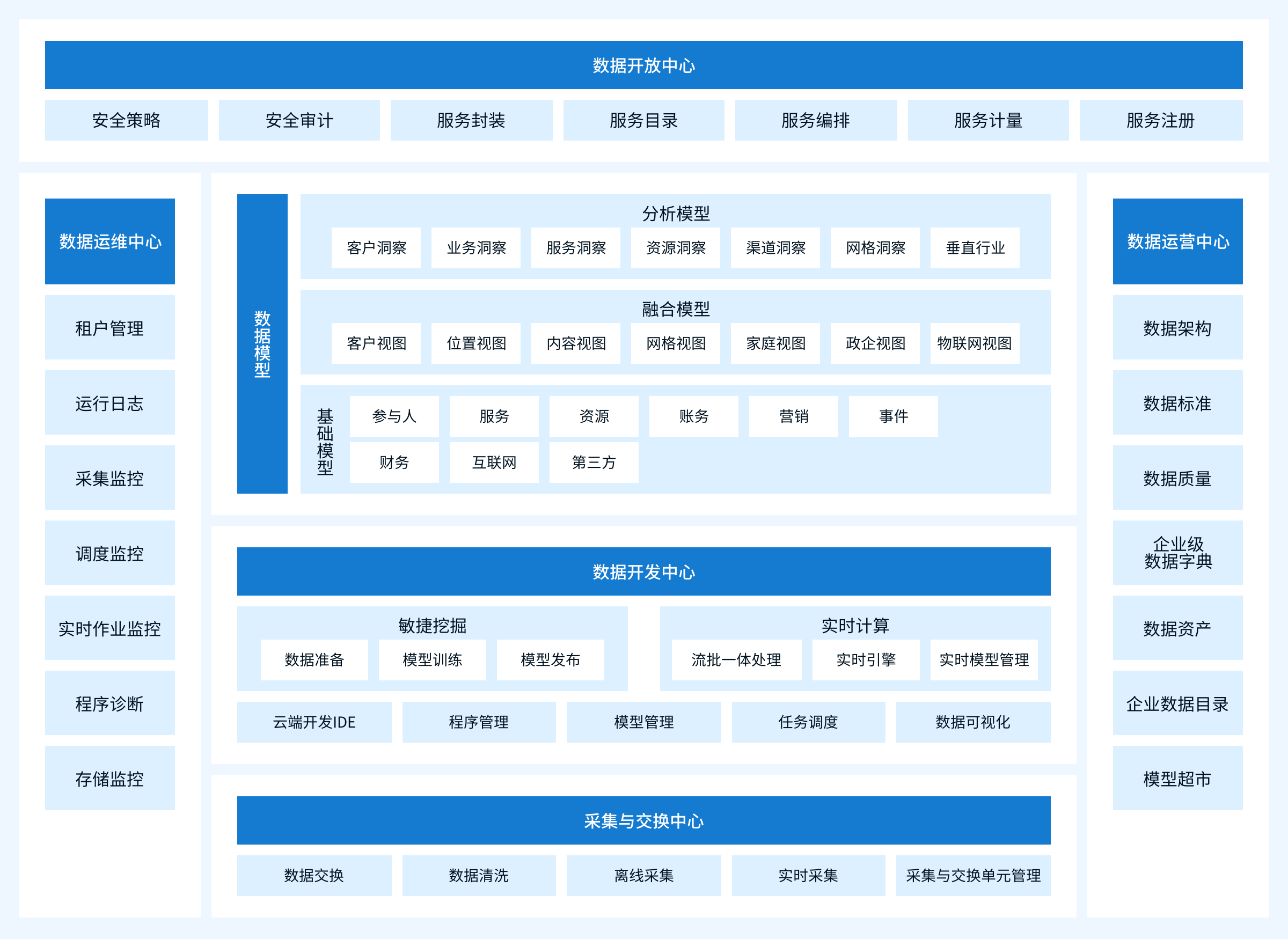 亚信科技使用大数据中台套件(AISWare DataOS)帮助客户实现涵盖采集、加工、使用、下线、优化、安全、运营、评估等数据资产全生命周期管理能力的构建,从各维度为业务提供持续的、可度量的价值推动运营转型和业务变革。