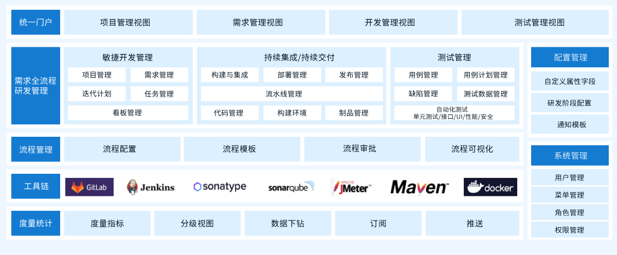 及时准确的监控、可视化的度量统计分析,基于度量数据,持续推进组织效能的提升。