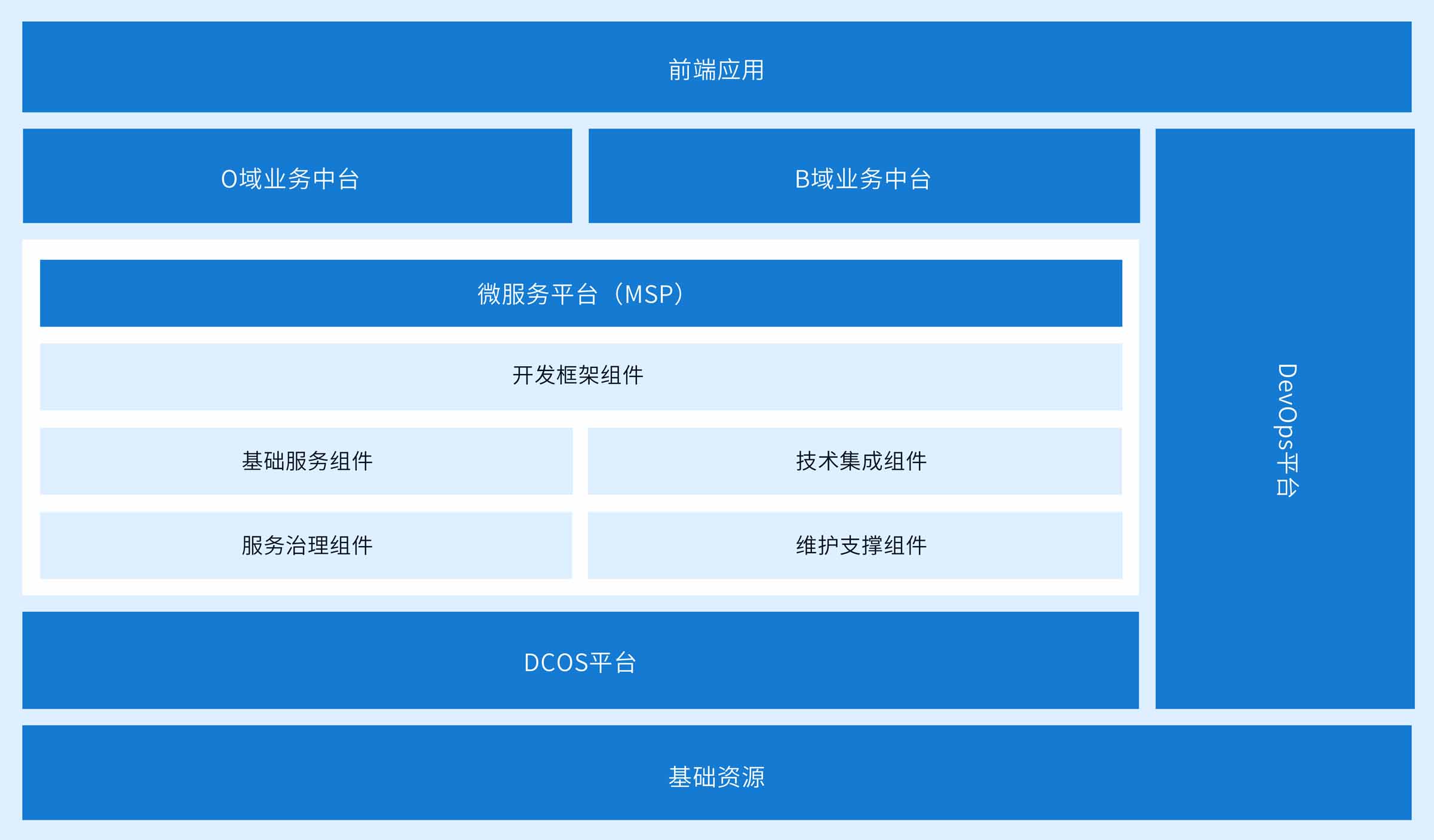 同时微服务平台协同DevOps平台,提供代码热发布能力;集成DCOS云管能力,实现服务和后台作业进程配置统一管理和后台作业进程调度,扩展DCOS对后台进程的动态扩缩容能力。