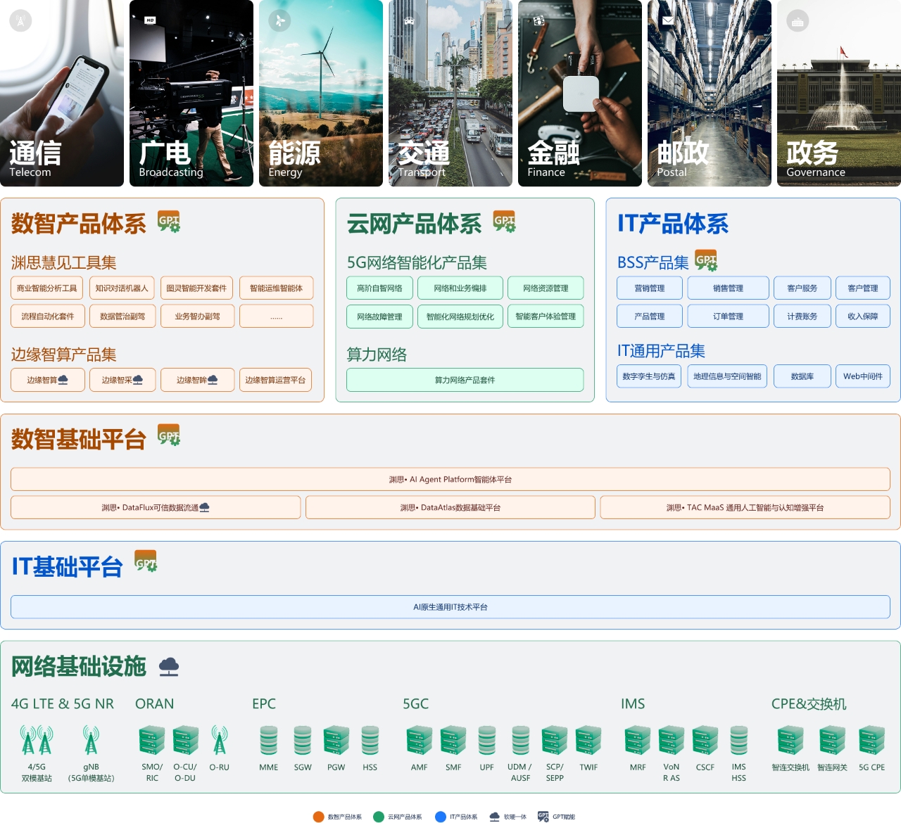 数智驱动、全栈赋能,向产品与服务双领先目标迈进。产品研发围绕数智、云网、IT 三大体系持续聚焦,实现行业引领,其中云网产品保持国际引领,数智领域通信AI国际引领,数据&行业AI领域国内领先,IT 领域产品处于国内第一阵营